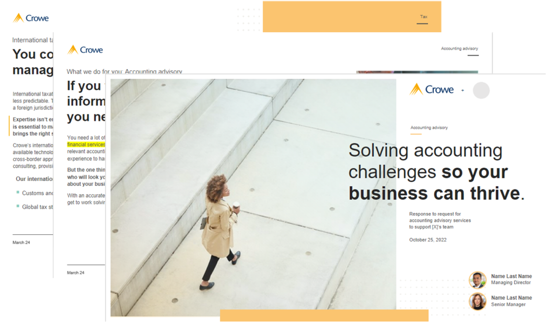During the RFP process, the Accounting Advisory team had short timelines to respond with detailed informationthat needed to be tailored to every unique engagement.