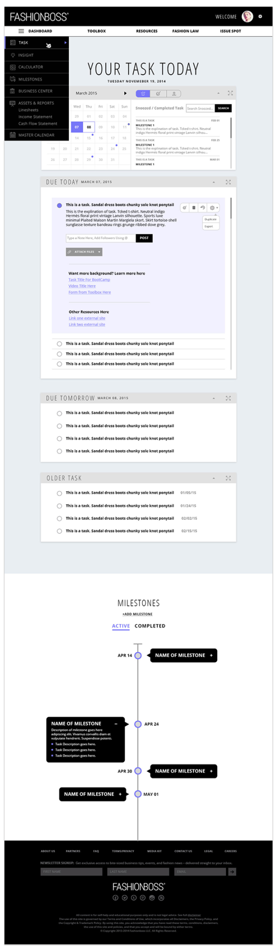 Finally, we combined the User Interaction designs with its skeleton and began looking for development partners. In working with a development team specializing in the rapid development of start-ups we engaged in fast-paced rounds of user testing and refinement. The project was a success and was granted Series A funding.